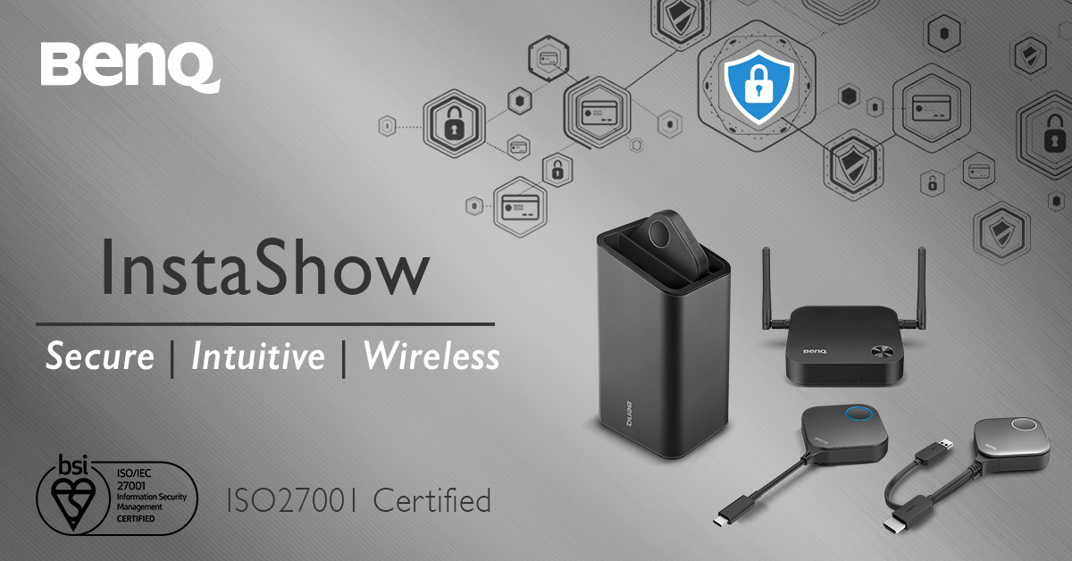 BenQ InstaShow jest rozwiązaniem Plug-and-Play do natychmiastowej, bezprzewodowej transmisji danych z laptopów, komputerów i urządzeń mobilnych z systemem Android i iOS z zachowaniem standardów bezpieczeństwa ISO/IEC27001.