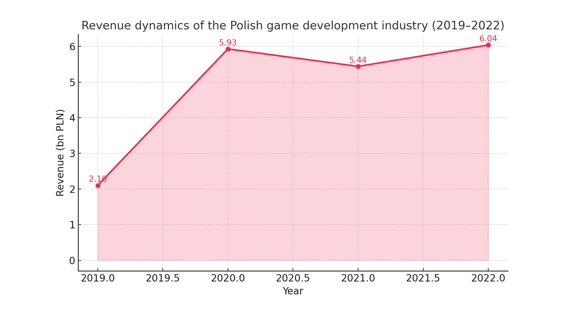 The figures best illustrate the dynamics of Polish gamedev. In 2022, the industry generated revenues of €1.286 billion (approximately PLN 6.04 billion), an 11 per cent year-on-year increase.
