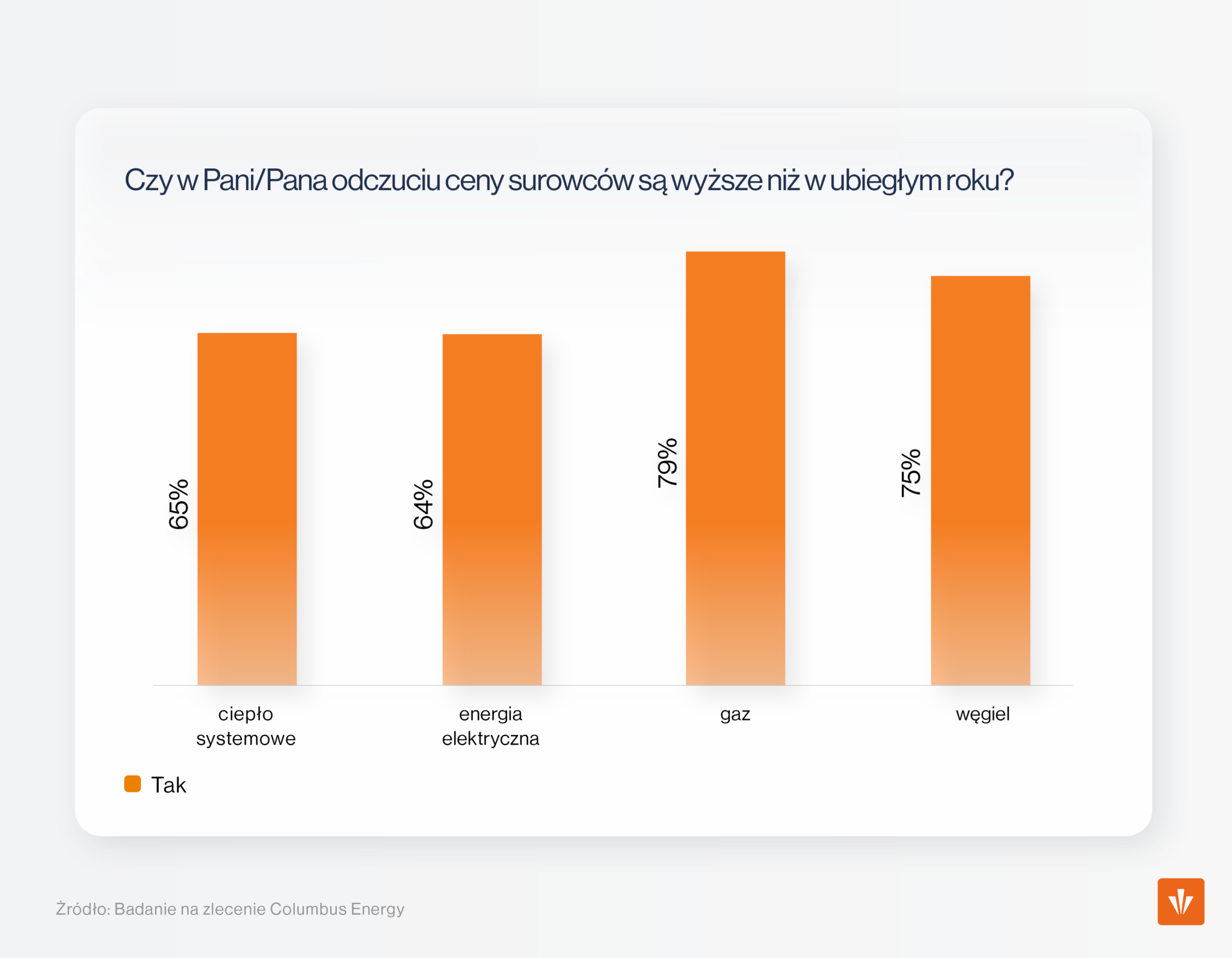 Polacy wyraźnie odczuwają wzrost cen wszystkich surowców energetycznych. 69 proc. badanych potwierdza, że podrożała energia elektryczna, 68 proc. odczuwa wzrost cen gazu, a 58 proc. twierdzi, że więcej płaci za paliwa stałe (węgiel, ekogroszek, drewno, pellet).