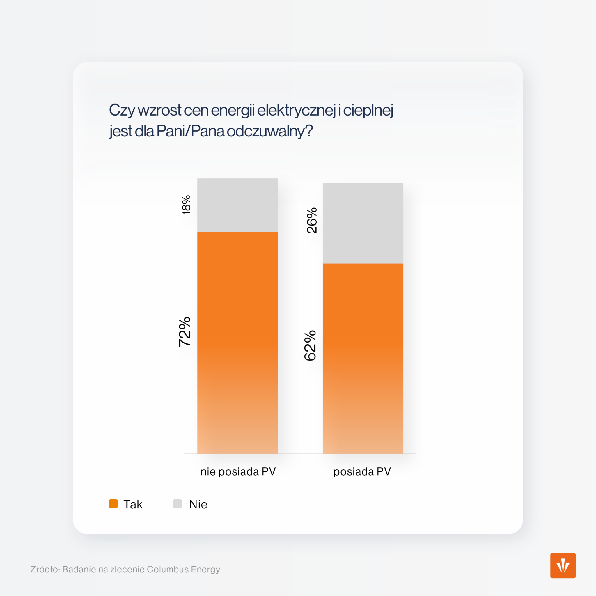 Kolejnym, ciekawym wnioskiem wynikającym z badania jest fakt, iż właściciele instalacji fotowoltaicznych rzadziej zgłaszają odczuwalność podwyżek cen energii elektrycznej i cieplnej. W pierwszej grupie odczuwalność wzrostu cen potwierdza 62 proc. badanych, zaś w grupie drugiej, bez fotowoltaiki – 72 proc.