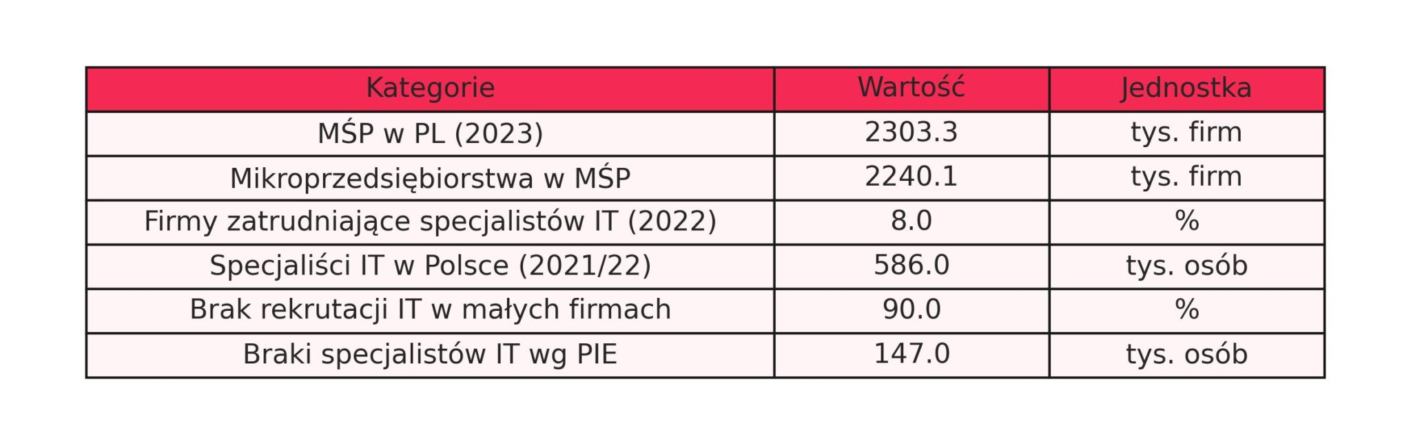 The Polish IT market is growing dynamically, but SMEs face a serious skills gap. The dominance of micro-enterprises and the prevalence of self-employment in the IT industry create unique barriers to talent.