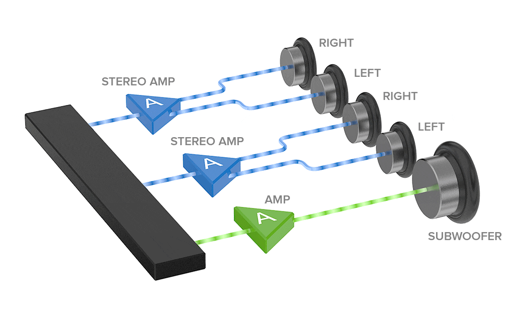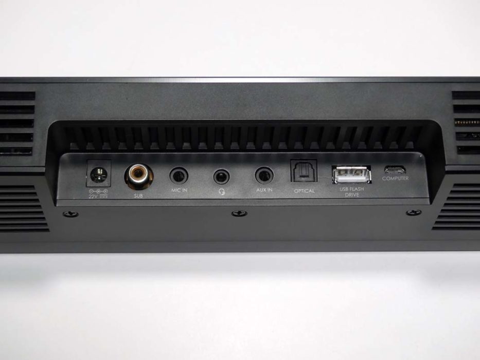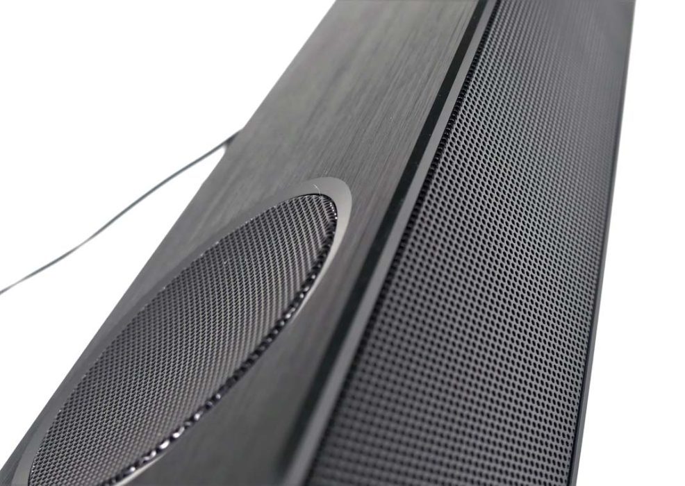 Za dźwięk soundbara odpowiada 5 głośników: wcześniej wspomniane dwa głośniki tonów średnich o średnicy 6,35 cm, dwa głośniki wysokotonowe o dużej amplitudzie o średnicy 3,4 cm oraz głośnik niskotonowy o średnicy ponad 13 cm z przetwornikiem o dużym wychyleniu membrany. Każdy z głośników jest umieszczony w oddzielnej przegrodzie, a za obsługę odpowiada wzmacniacz sterowany przetwornikiem DPS. Producent podaje, że soundbar dysponuje mocą 75 W RMS/150 W. Urządzenie posiada przetwornik DSP, który sprawia, że jest to pierwsze na świecie urządzenie z prawdziwym system audio montowanym pod monitorem (Under Monitor Audio System — UMAS).