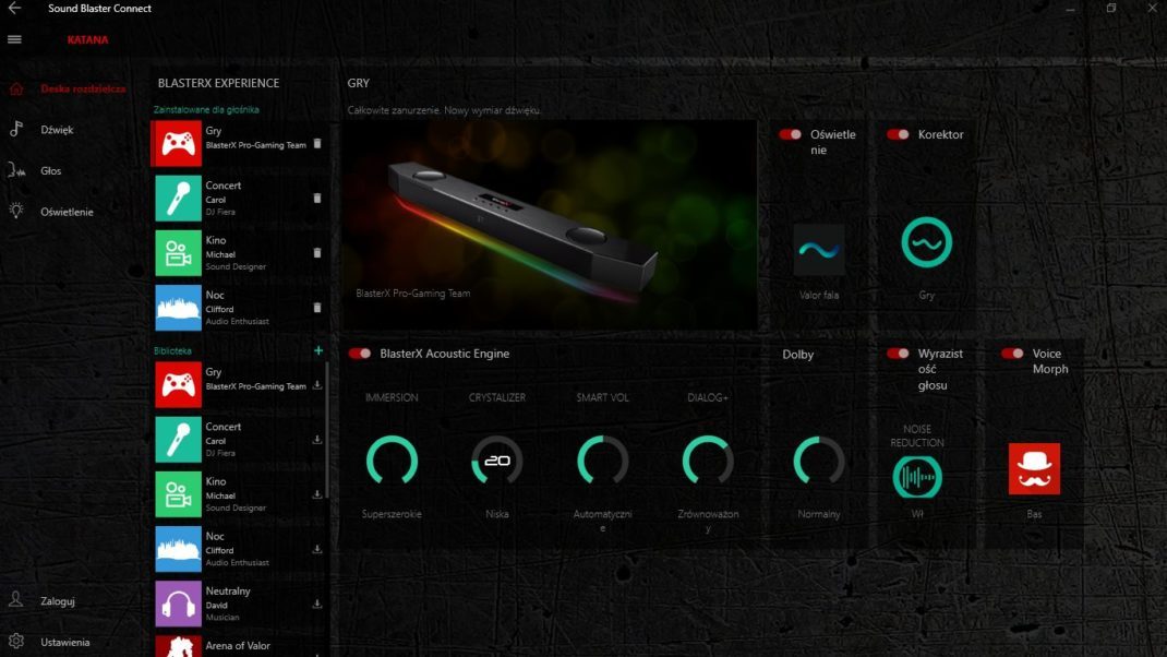 Aplikacja Sound Blaster Connect oferuje dostosowanie do preferencji użytkownika każdego elementu – zarówno jakości dźwięku, efektów świetlnych jak i profili.