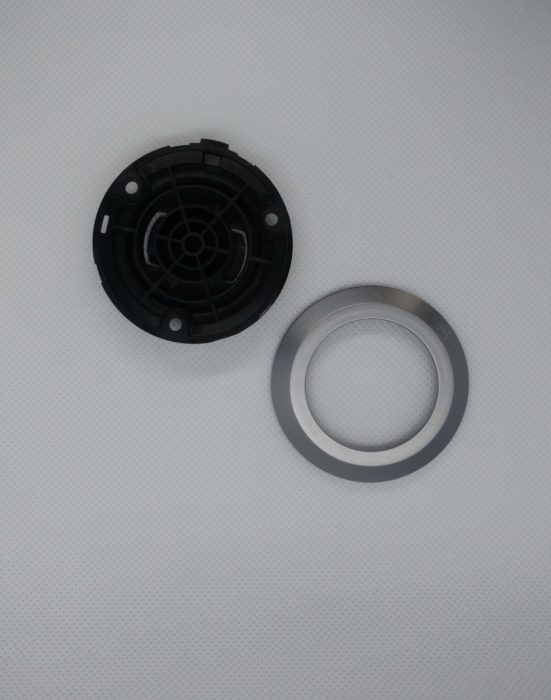 Pragnę się jeszcze zwrócić uwagę na dostarczany system montażowy. Samo mocowanie jest wykonane z naprawdę dobrego, trwałego plastiku w czarnym kolorze. Jednak nakładka na nie, o ile ładnie pomalowana na srebrny kolor to wykonana z wątpliwej, jakości tworzywa. Sam sposób nakładania jej również nie wygląda na zbyt trwały.