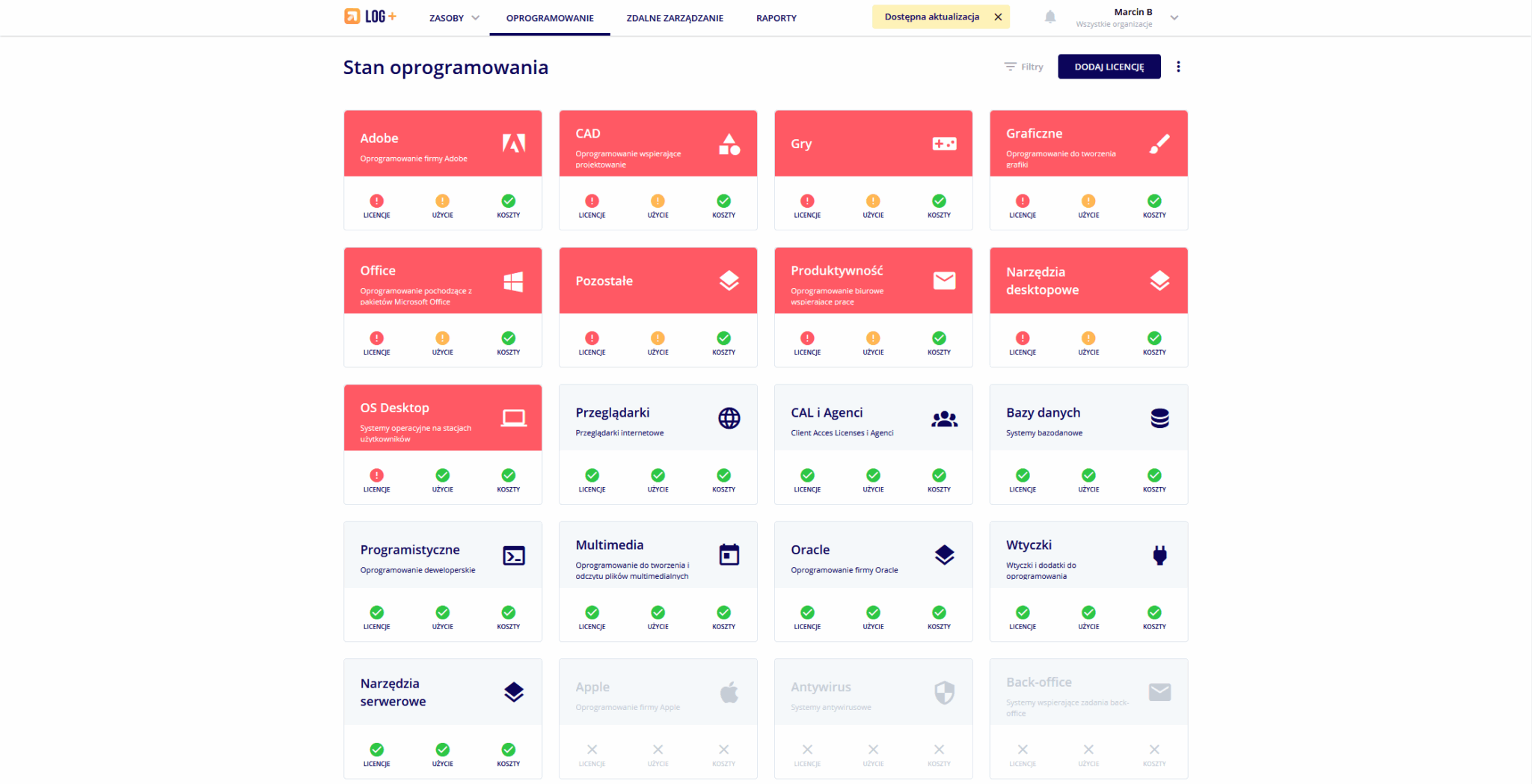 Jedną z ważniejszych funkcji oprogramowania LOG Plus jest zarządzanie licencjami. Oprócz standardowej możliwości rozliczania licencji, aplikacja monitoruje też, jak już wspomniałem, wykorzystanie oprogramowania wśród użytkowników. Dzięki temu, można określić rzeczywiste zapotrzebowanie pracowników na dany program, a następnie optymalnie przydzielić lub zakupić potrzebne czy też brakujące licencje. Co ważne, Agent LOG Plus monitoruje, jakie aplikacje zostały instalowane przez użytkowników bez wiedzy przełożonych. Komunikat o nowym programie pojawia się natychmiast w powiadomieniach. Takie funkcjonowanie programu przekłada się bezpośrednio na bezpieczeństwo i ochronę firmowych danych.