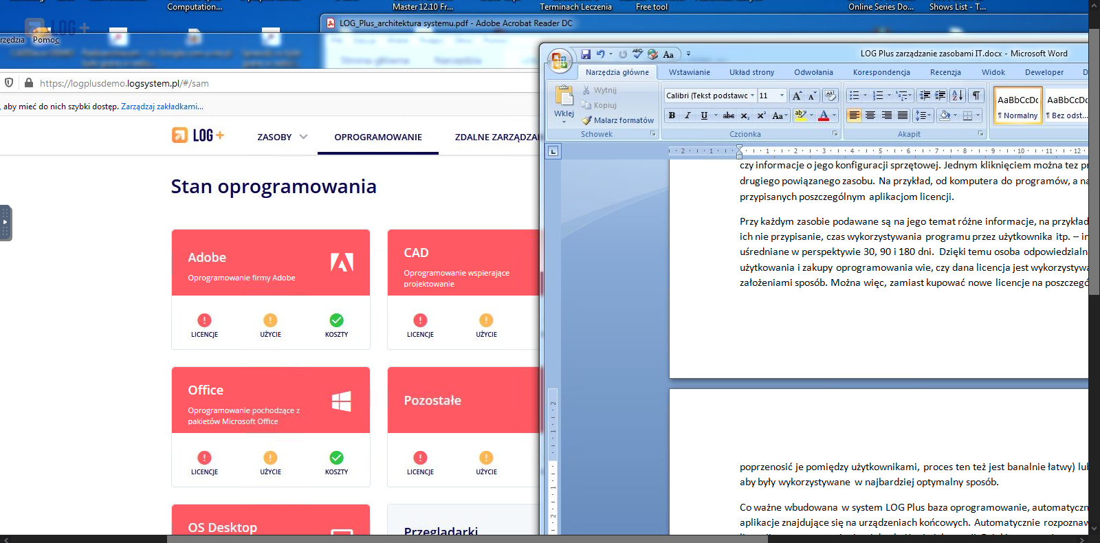 Na rynku dostępne są oprogramowania będące odpowiedzią na konieczność dobrego zorganizowania zarządzania zasobami IT. Jednym z takich rozwiązań jest oprogramowanie LOG Plus w wersji 1.7.70. firmy LOG Systems, które testowałem przez nieco ponad tydzień. LOG Plus pozwala na intuicyjne zarządzanie zasobami i procesami IT w firmie. Przez kilka dni testów miałem okazję przekonać się, że oprogramowanie jest przede wszystkim wyjątkowo łatwe w obsłudze oraz posiada bardzo istotne funkcje, czyli opcję inwentaryzacji sprzętu i oprogramowania, a także zbiorcze zarządzanie licencjami.