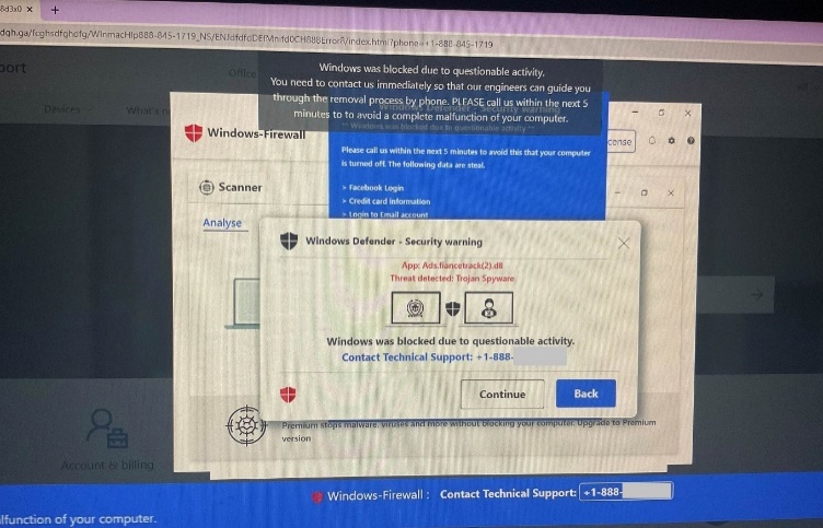 • Potajemnie narażać urządzenia użytkownika na instalację złośliwego oprogramowania poprzez „drive-by-download”, które tworzy fałszywe ostrzeżenia i nakłania ofiarę do kontaktu telefonicznego z podanym numerem, aby rozwiązać problem.