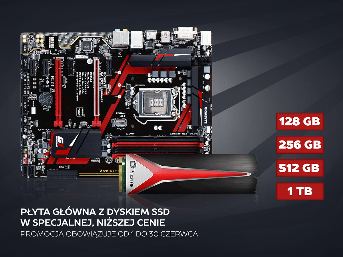 Plextor M8PeY/M8PeG/M8PeGN 512 GB z płytą główną Gigabyte Z170-GAMING K3 taniej o 40 PLN