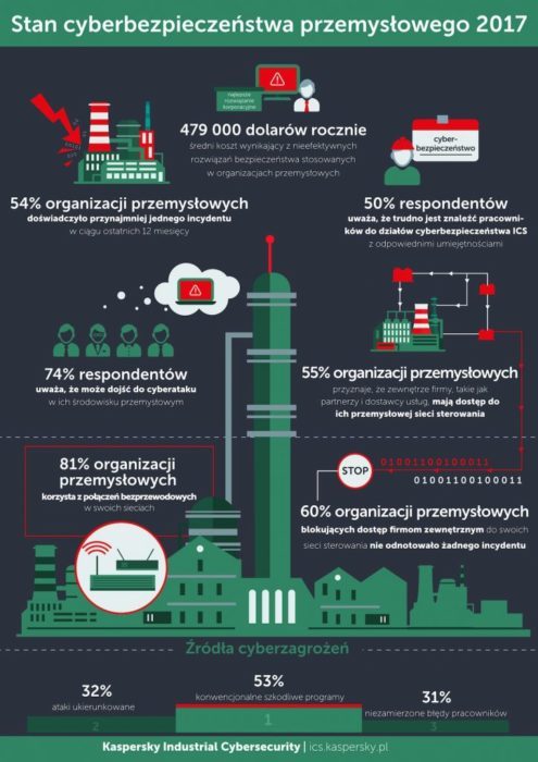 Wyłaniający się trend Przemysł 4.0 powoduje, że cyberbezpieczeństwo staje się najwyższym priorytetem dla organizacji przemysłowych na całym świecie, tworząc nowe wyzwania w zakresie systemów sterowania (ICS). Obejmują one połączenie technologii IT oraz OT (technologia operacyjna) oraz dostępność przemysłowych sieci sterowania dla dostawców zewnętrznych. Aby poznać bliżej problemy i możliwości, wobec których stoją obecnie organizacje przemysłowe, Kaspersky Lab i Business Advantage przeprowadzili globalne badanie obejmujące 359 praktyków w dziedzinie bezpieczeństwa przemysłowego w okresie luty-kwiecień 2017 r. Badanie wykazało, między innymi, rozdźwięk między rzeczywistością a postrzeganiem incydentów w przemyśle. Na przykład, chociaż 83% respondentów uważa, że jest dobrze przygotowane, aby stawić czoło incydentowi naruszenia cyberbezpieczeństwa OT/ICS, połowa zbadanych firm doświadczyła od jednego do pięciu incydentów naruszenia bezpieczeństwa IT w ciągu minionych 12 miesięcy, podczas gdy 4% doświadczyło ponad sześciu incydentów. Pytanie, jakie nasuwa się w związku z tym, brzmi — co należy zmienić odnośnie strategii bezpieczeństwa oraz środków ochrony tych organizacji, aby mogły skuteczniej zabezpieczać swoje krytyczne dane biznesowe oraz procesy technologiczne?