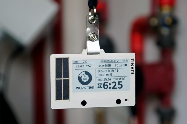 Można powiedzieć, że TIMATE to odpowiedź na pytanie, do czego może być przydatna technologia Internet of Things w biznesie. Sercem systemu jest karta noszona przez każdego pracownika – będąca inteligentną wersją zwykłego identyfikatora. W taką zasilaną energią słoneczną kartę z wyświetlaczem opartym na technologii elektronicznego atramentu udało się wbudować jednocześnie funkcje recepcjonistki, ochroniarza, kadrowej, a także szefa, który może wgrywać harmonogram pracy i rozliczać nas z wykonywanej pracy również zadaniowo.